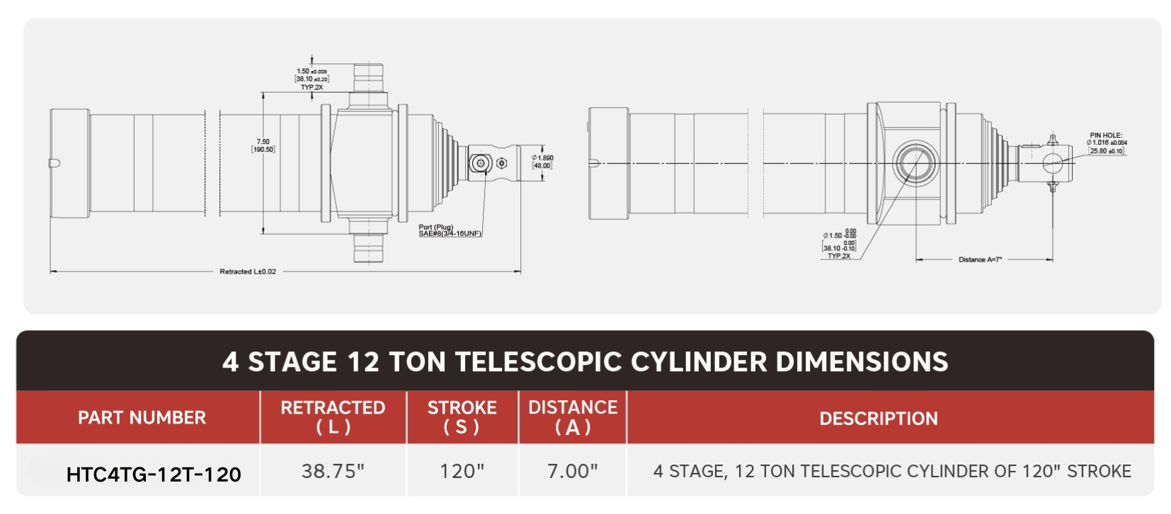 Balises actives: "HTC4TG-12T-120", 4 étages, 12 tonnes de cylindre télescopique à course de 120", fabricants, fournisseurs, vente en gros, sur mesure, en stock, camion refusé, Chine, chasse-neige