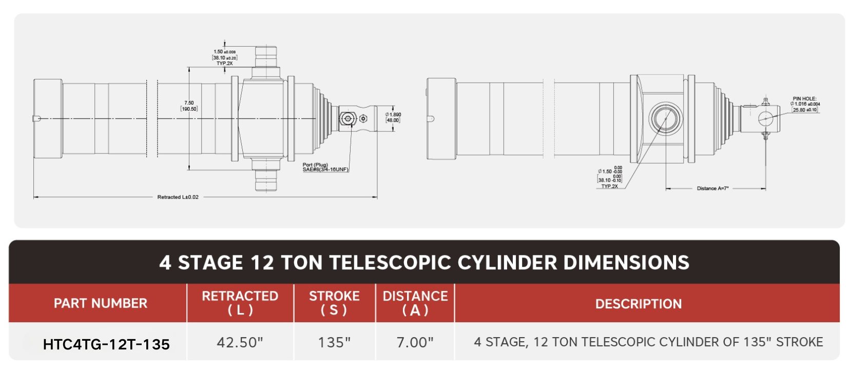 Balises actives: "HTC4TG-12T-135", 4 étages, 12 tonnes de cylindre télescopique à course de 135", fabricants, fournisseurs, vente en gros, sur mesure, en stock, camion refusé, Chine, chasse-neige