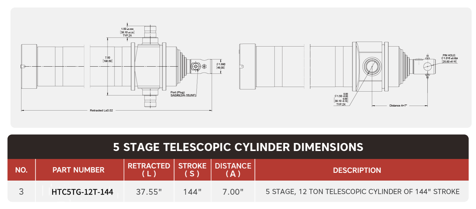 Balises actives: "HTC5TG-12T-144", 5 étages, 12 tonnes de cylindre télescopique à course de 144", fabricants, fournisseurs, vente en gros, sur mesure, en stock, camion refusé, Chine, chasse-neige