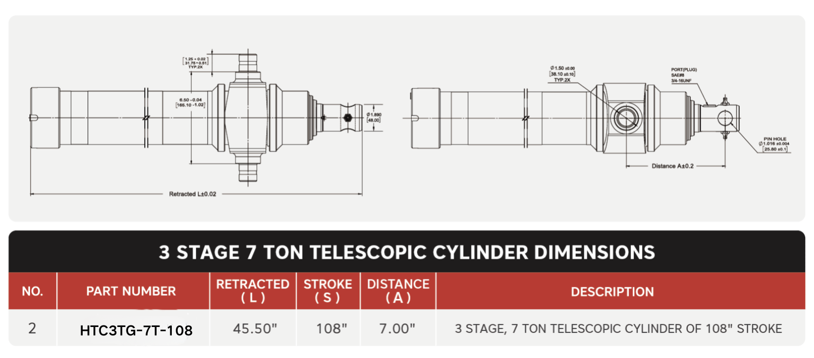 Balises actives: "HTC3TG-7T-108", 3 étages, 7 tonnes de vérins télescopiques à course de 108", fabricants, fournisseurs, vente en gros, sur mesure, en stock, camion refusé, Chine, chasse-neige